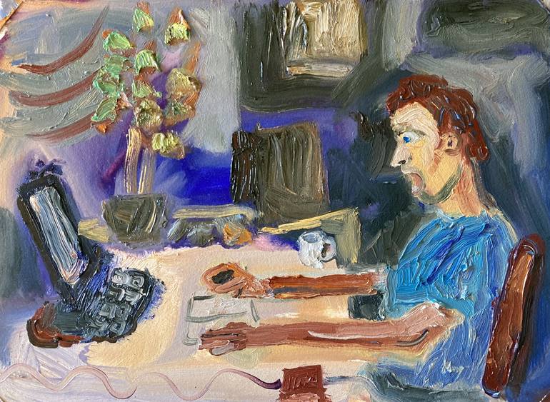 I wrote a song called "I'm so glad I'm not on social media," and I painted this picture as a companion piece for the song. Here is the YouTube link to the song. https://youtu.be/XB1xG1LIx2k signed on back on beautiful arches oil paper