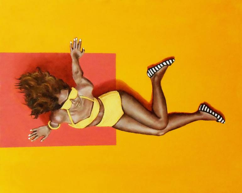"I'm here ... ! Too much sun does not happen ..." Oil on canvas 50x40cm Summer, a lot of sun and beautiful people, beach, maybe the sea ... Looking for a girl? She is here... No frame required