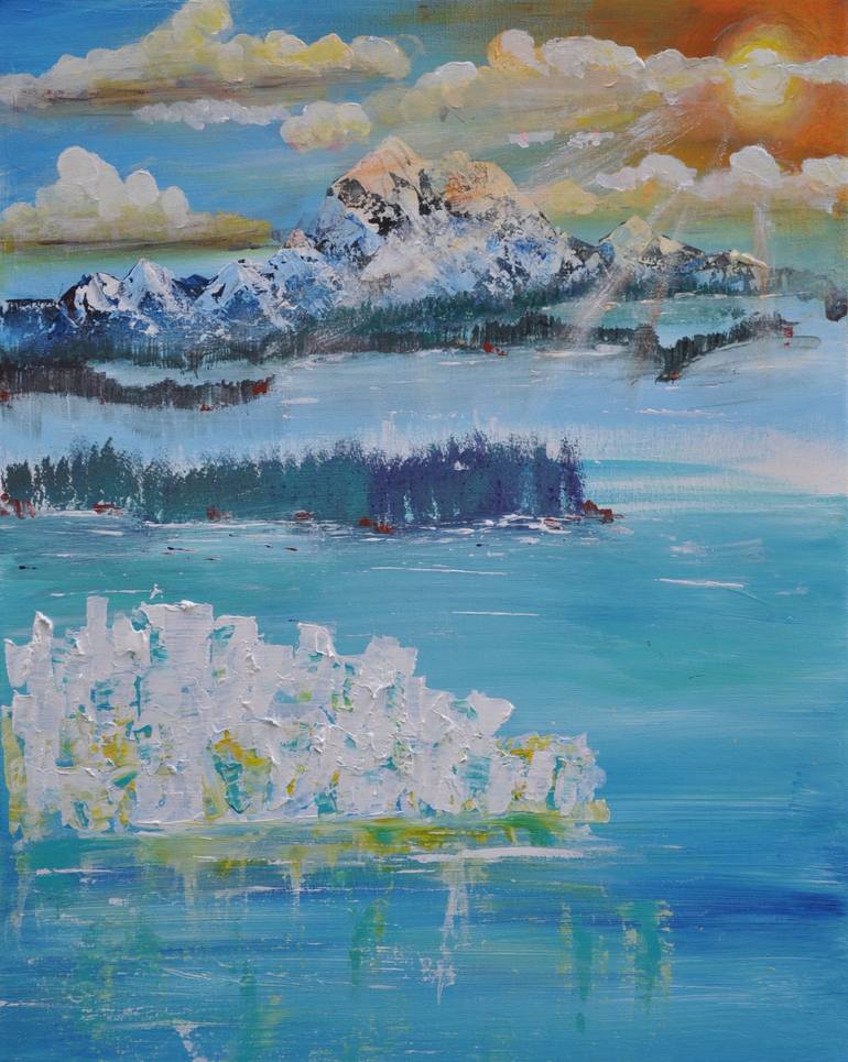 Small ice shelf floating in Alpine evening Sun. 20 x 16. Acrylic on canvas.