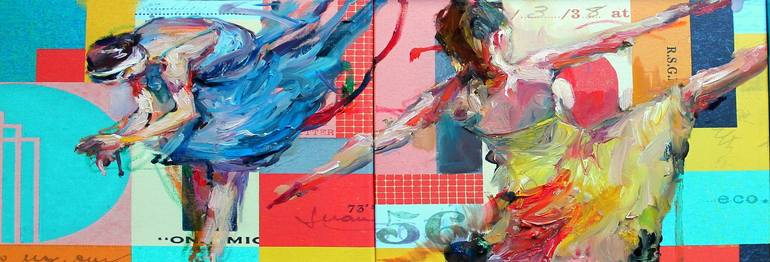 Repaint on top an otherwise lost-in-bad-taste good canvas: mixer media on a triptych Ikea canvas print: 29.5 W x 9.8 inch. ( 75x25 cm). Signed and Dated 2019. I've tried to recover and extract life from the commercial efficiency symbol par excellence: Ikea wall art . I added woman dancers and nude,...