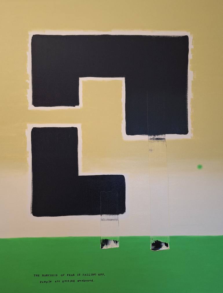 A collection of artworks called INTONATION. Title of the painting THE NARCOSIS OF FEAR IS FALLING OFF, people are getting awakened. Inspirations from a poetry collection.