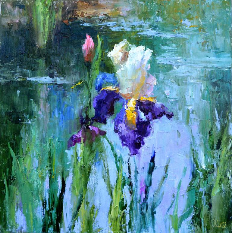 This work is inspired by a wild irises pond. painting with a palette knife Canvas Italy by Caravaggio