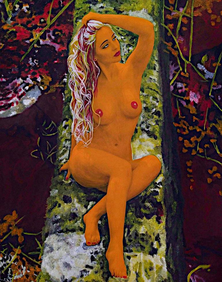 In crafting this piece, I poured my soul into the vibrant acrylics, capturing raw human essence amidst nature's embrace. It's an expressionist journey through the figure's sensuality and freedom, their connection with the surrounding flora. Every stroke is alive with emotion, a fine art dance on pap...