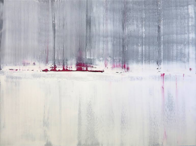 This original is a conversation piece, an 'Ice Breaker'. Calming white and gray background with a pop of burgundy/maroon. Acrylics were mixed with molding paste to create a 3D feel and look to the painting. This is an original painting and signed at the back Ready to hang flush against the wall