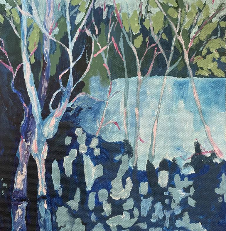 Forests gets really cold and chilly. They could be harsh too.But nature is always nurturing and you'd always find green against uncompromising blues. This painting is acrylic on un-stretched (flat) canvas/duck fabric. It has 1 inch margin on each side and you can frame it the way you want. Signed ...