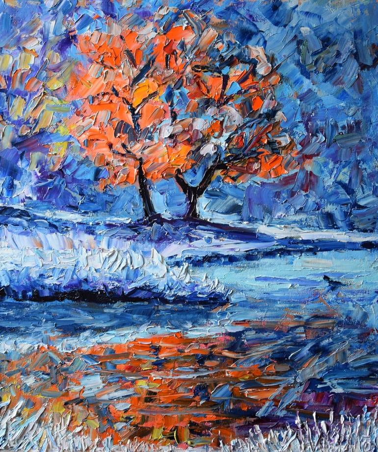 Abstract landscape original oil painting on canvas in bright and contrast colours. Free palette knife work, expressionistic impasto style. This painting is an original, authentic, one-of-a-kind, 100% hand painted. Created using oil colors on canvas. Colors are bright and positive. It rises up your m...