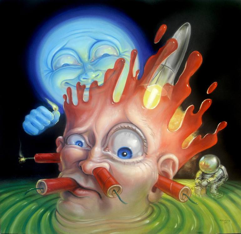 Head explodes detonated by astronaut and moon lighting dynamite