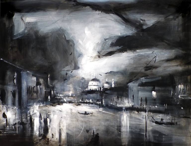 View of the Gran Canal at the height of the Academia. At nightfall, there is still a lot of activity. In the distance La salute and the exit of the canal. Although very famous, it is a place where I often like to stay and watch.