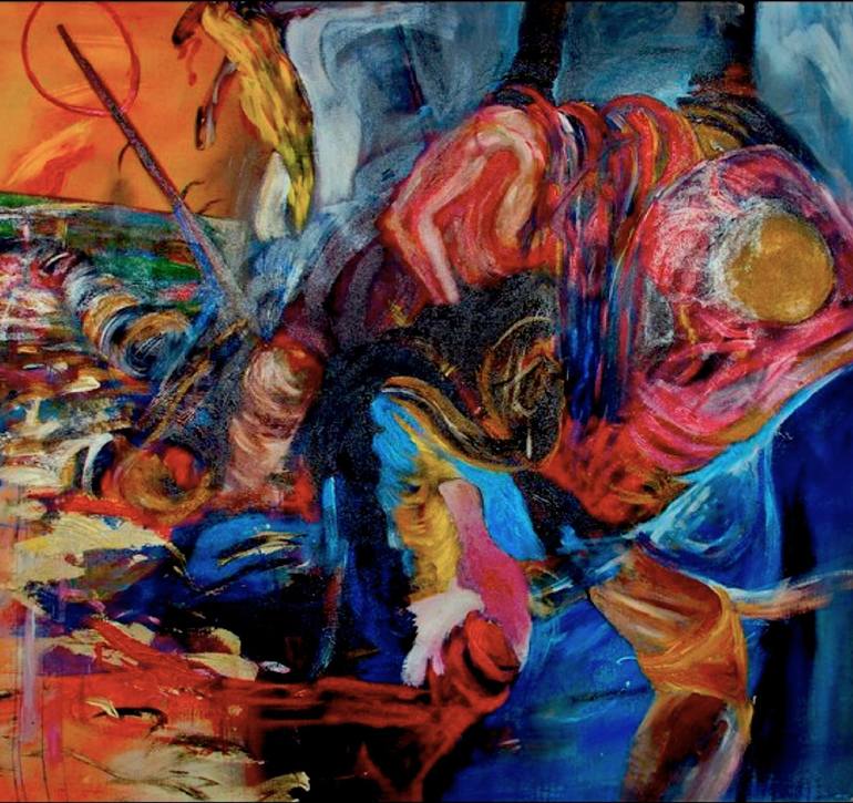 The paintings I create are expressions of gestural spontaneity and formal deconstruction of the canvas. I’m most interested in each moment or fragment of the canvas being a sensation of losing or finding oneself in a space of metaphysical or existential sub-consciousness. My practice is devoted to studying the body’s movement or layout beyond the conventional pictorial planes, defined by layer upon layer of paint. The act of painting, as I know, is reflected and studied through metaphysical instances of existence and absence, and questions the sensations we feel as humans through color and form. I like to critique relevant cultural discourse such as consciousness, sensations, stereotypes, clichés, rhetorical statements, ideals and beauty in my paintings. The figurative-abstract or “fabstract” style is a deconstruction of still and moving figurative renderings. I feel that through abstracting the figure, I am distorting the lens of normality much like these discourses abstract our perception of normal.