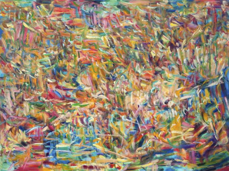 This painting as the title implies is about the quality of immersion - in this case immersion in a field of colors and the passages created with them. Filled with markmaking and thin and thick paint, this work was created in layers. It is from my Preludes series.