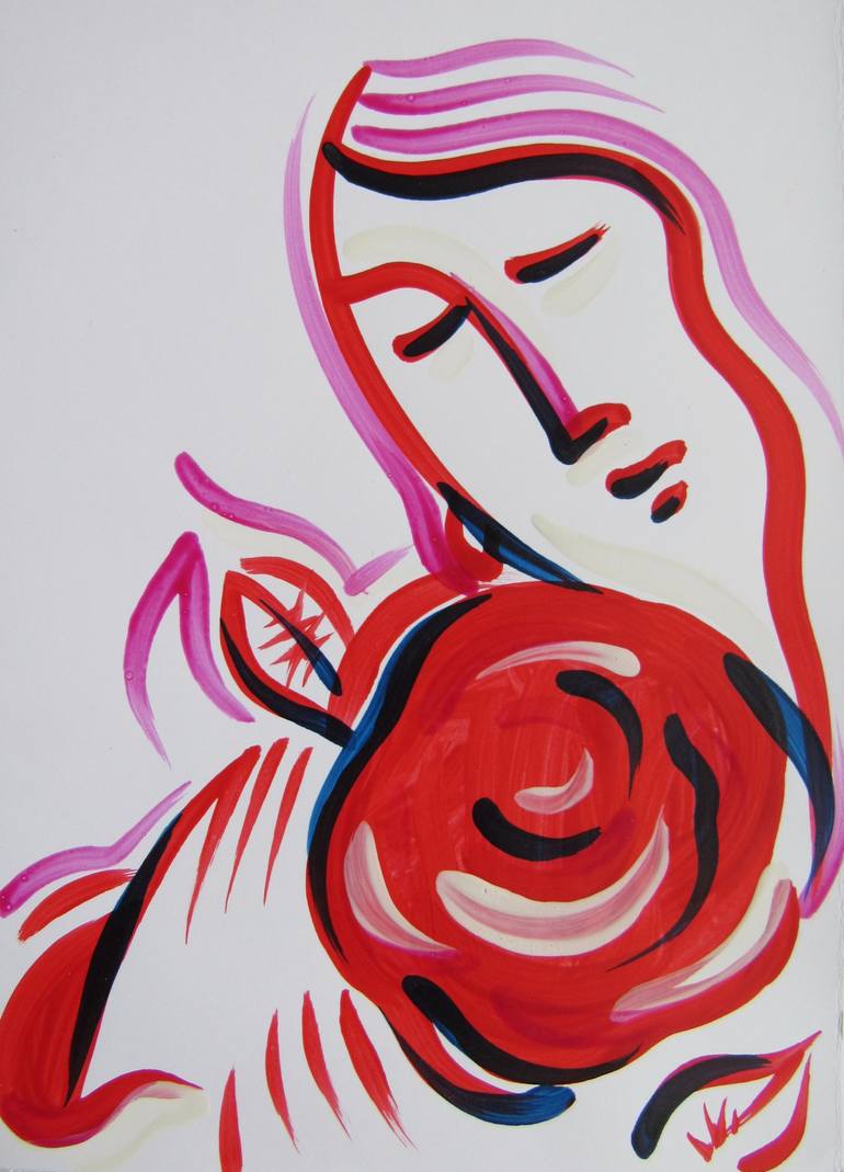 «Immersion in the flower world» 2016 The picture is painted with acrylic on paper. And again her heart blossomed with hopes, dreams, trust ... And she thought she would never be able to! Who to give a flower of your trust to today ??? This picture is a portrait of your soul. May your days, hear...