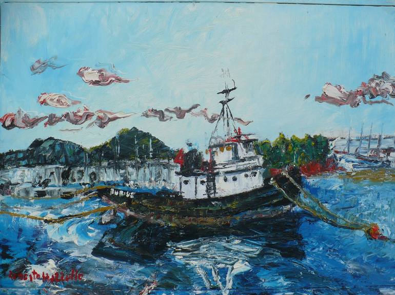 Tow boat "Impetuoso" in Olbia's harbour.Painted in oil on canvas.