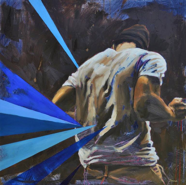 "Impression" is part of a series called "Inception". These works deal with the impact and influence that the unseen, spiritual world has on us. In this artwork that "influence" is depicted as blue rays of energy or power that work two ways: either they are striking the figure, and impacting the pers...