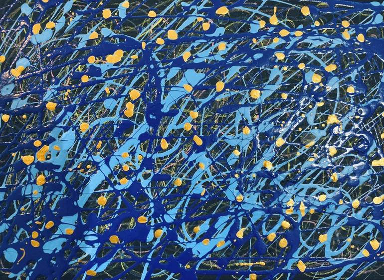 Painting: Acrylic, Oil, Paint on Canvas. Original abstract painting for modern interior designs created in my studio, Vancouver, Canada Professional Grade Acrylic Painting on Canvas using drip and drop application techniques Title: Impulse Size: 60 x 90 cm SIGNATURE: Always signed. Either on the...