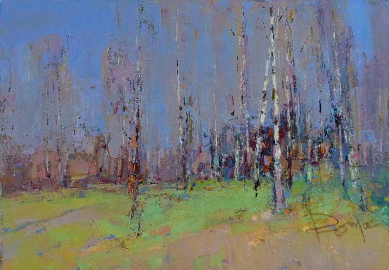 ARTIST: Roman Naidon TITLE: "IN APRIL" MEDIUM: Oil on Canvas YEAR: 2022 DIMENSIONS: 60x80 cm / 23,6x31,5 inches WORK: Original Oil Painting, Handmade Artwork, Landscape Painting DESCRIPTION: A soft whisper of spring unfolds in "IN APRIL," a mesmerizing oil painting that captures the delicate t...