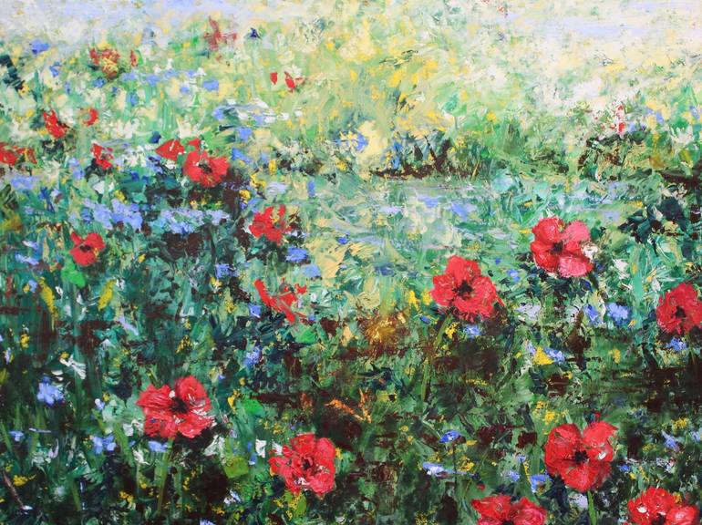 A vibrant field or red poppies flows with energy and color in this warming tribute to veterans and their families. Inspired by the poem "In Flanders Field" and the flower that has become a symbol of the beauty and healing that can be found in the aftermath of war, Saltiel contributes to the this he...