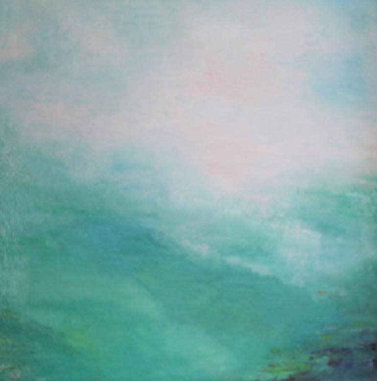 Inspired by color specially blues and greens together as they are the colors of the landscape where nature lives. This is painted in abstract style with those colors that give a feeling of calm . It's painted on an extra large canvas with artist oil colors with the deep edges of the canvas left whit...