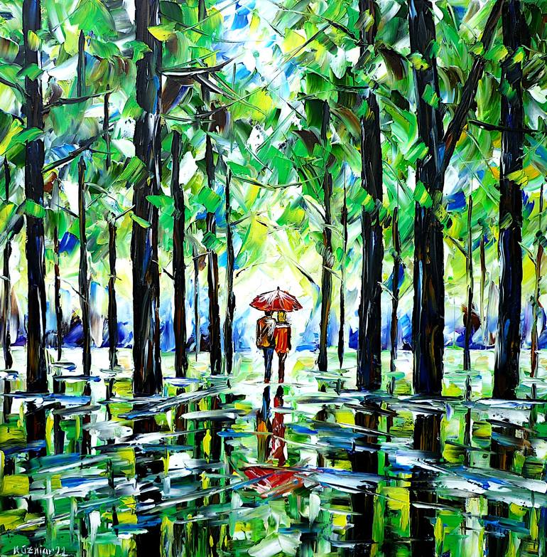 I was born on 12 August 1968 in Boleslawiec, Lower Silesia (Poland). Since 1981 I live in Heilbronn, Germany. Mainly I paint with palette knife and oil paints. Certain motifs return in my paintings again and again. Landscapes, city scenes and lovers walking hand in hand. Animals, mothers with children and older people also accompany my canvases. My paintings are characterized by a greatly reduced color palette, which still appeals to the viewer as very lively. It is not important to me to represent everything correctly. But much more, a monotonous scene to transform into a colorful life with fast palette knife work. A cold gray landscape turns flaming yellow and red.