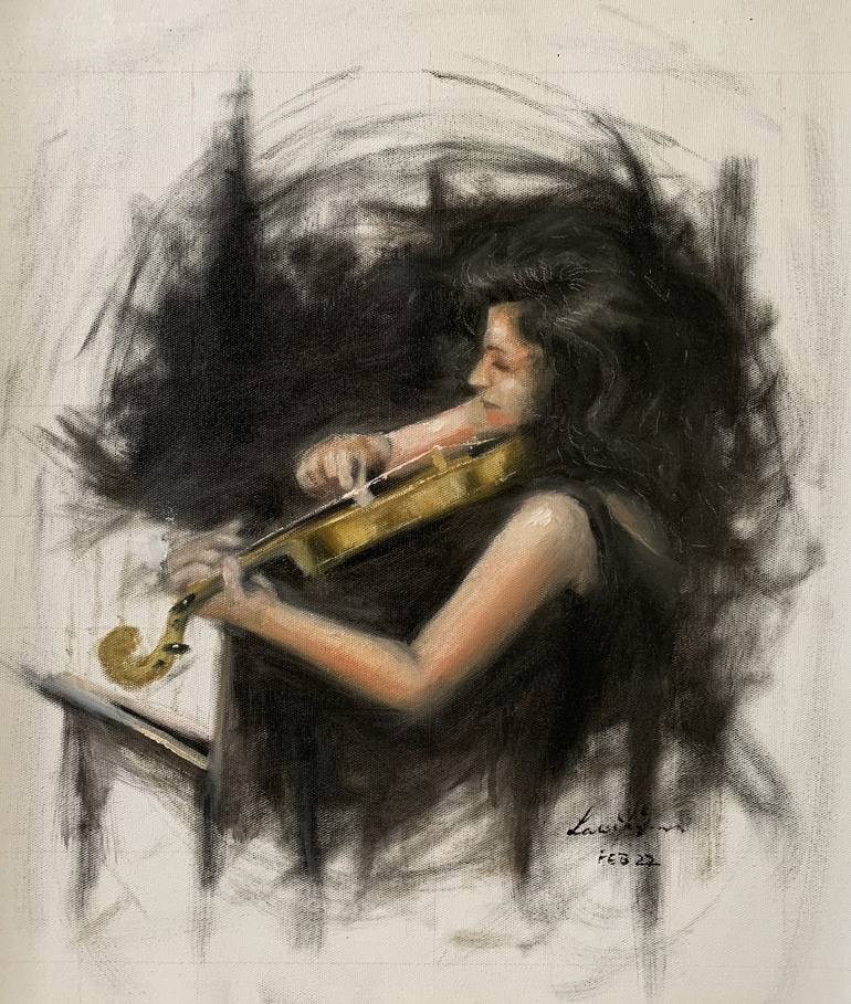 Female Violinist Playing and lost in the "Zone" Painted with oil colors on Canvas.