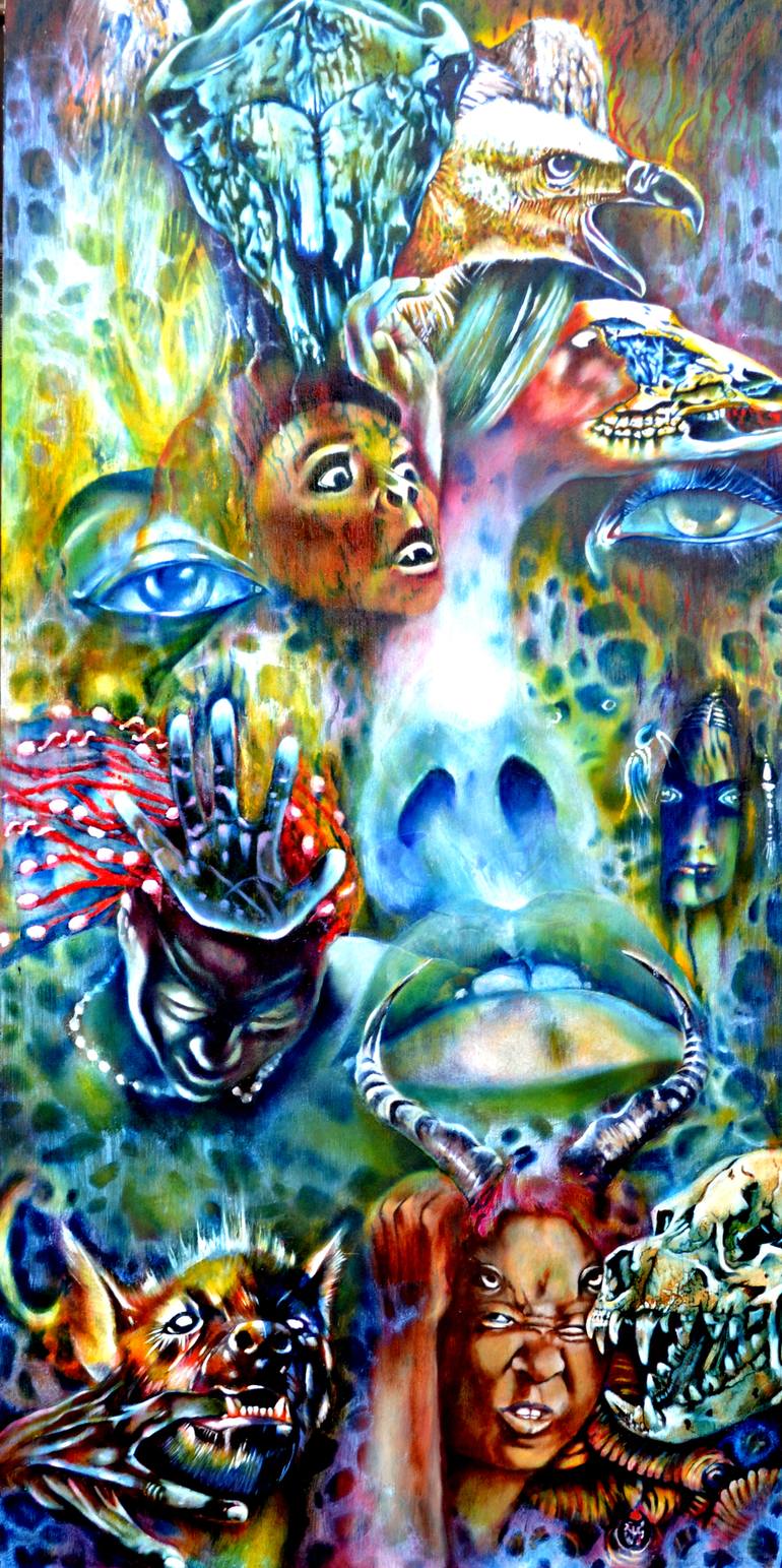 The painting illustrates a technique utilized by some practitioners of the magical tradition to ward off what is perceived as, and known by, psychic attack. In many ways, the method mirrors the use in Medieval times on churches where a grotesque image, gargoyle, was stationed on the outside of the ...