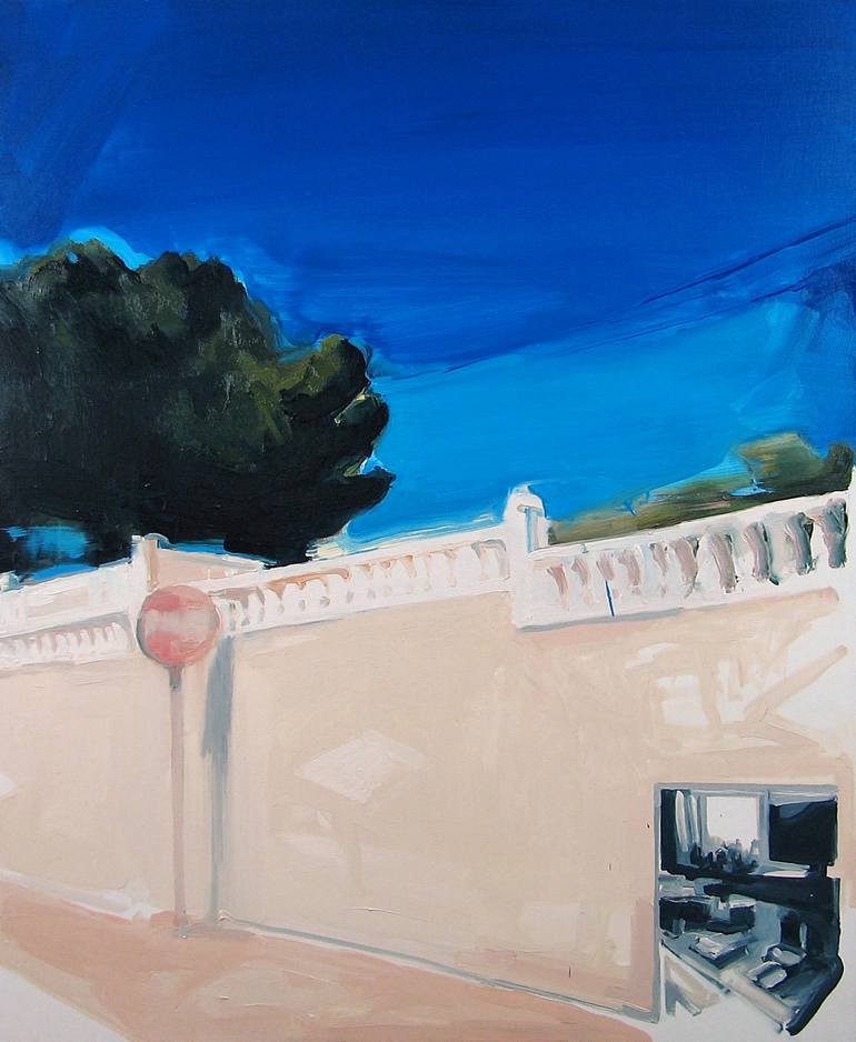 oil on canvas, 110x90 cm; we are in touch with people from all over the world, global village works, but face-to-face contact is so rare; really, we have contact with images of people and places; directly inspired by Skype conversations;