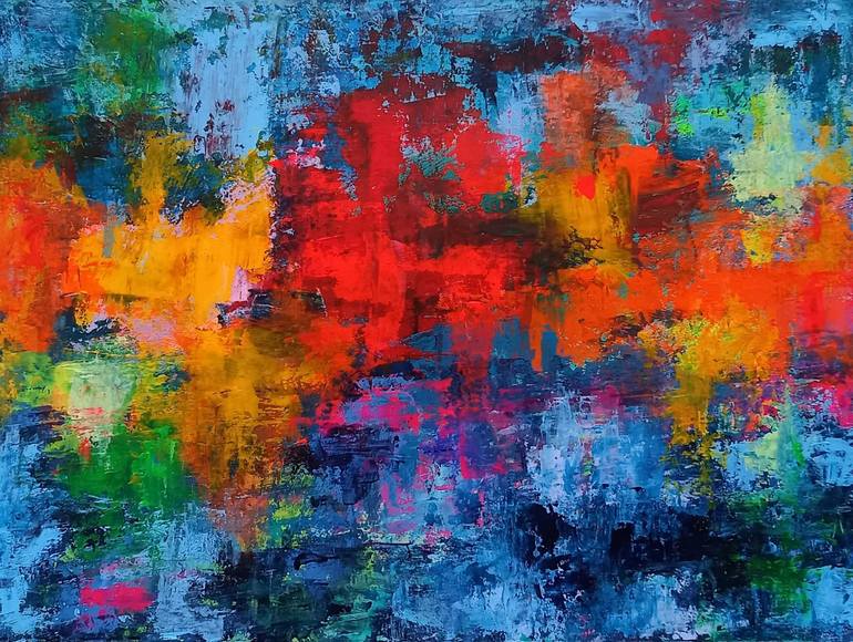 A beautiful and colorful feeling, straight from the heart. The highest quality professional paints were used. The use of palette knives and brushes created this effect. A signed and dated certificate of authenticity is included. The painting is signed and ready to frame.