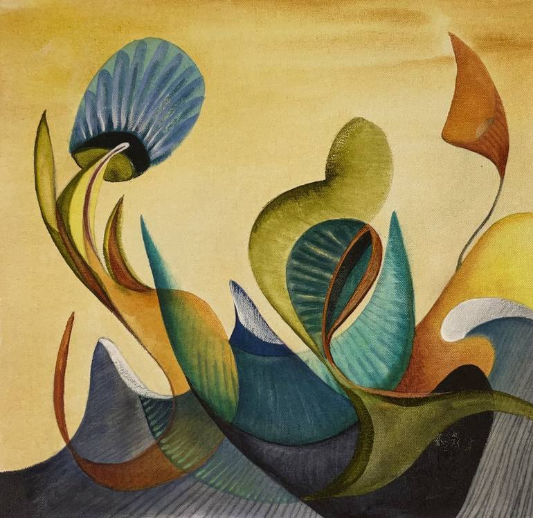 Julia Pinkham’s passion for nature expresses itself in her vibrant biomorphic compositions. Her lively abstractions are often based on natural forms and images that develop from her imagination. Julia has been self-employed as an artist for all of her life. Her work has been strongly influenced by her fascination with organic forms. Her current series of abstract paintings, done with mixed media and acrylic on both canvas and paper, reflect her ongoing interest in both the Surrealist’s “automatic painting” and the Abstract Expressionist movements in American art. She works full time at her art. ARTIST STATEMENT: “My painting method uses concepts developed in Surrealism, which employs automatism to create a dialogue between unconscious impulses and purposeful “left-brain” deliberation. I sometimes work with my brushes attached to long sticks, seeking to blend random actions with controlled, intentional ones to gradually reveal the images that appear in my paintings. I often work on more than one painting at a time, which allows me to avoid over-valuing certain aspects of my works that are in progress and come back with a fresh perspective.”
