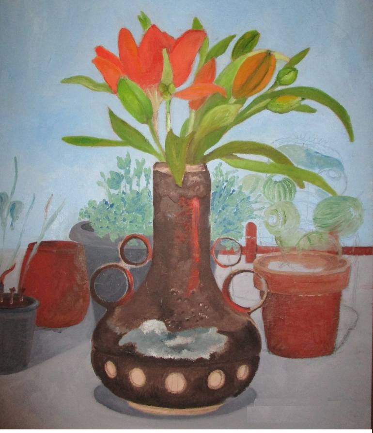 Original oil paintings plants and pots from my back garden during summer season.