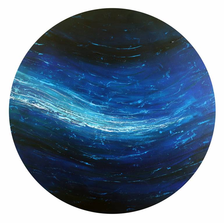 This work is the third circular panel of a triptych (tondi). The painting depicts flowing water into the depths of the ocean. Flow is a strong energy that recalls the beginning of life in ancient times.