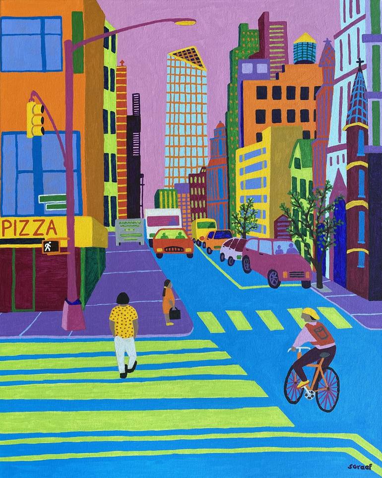My works are vibrant acrylic paintings on stretched canvas, lightheartedly communicating how I see the world. Currently I am working on a large series of landscapes, ranging from urban to suburban and rural. Inspired by life itself, my intention is to intrigue and amuse my audience while they smile at colorful images. After all, people must disengage themselves from a stressful day to day existence and I would like to think my work provides that escape at least for a moment or two.
