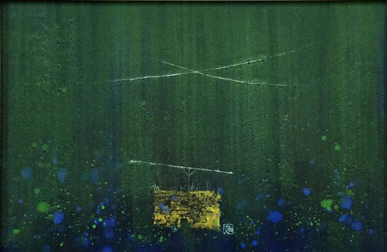 It's a Japanese style painting. It has been drown by Mineral pigments on Hemp paper and a wood panel. She drew a view in Philippines.