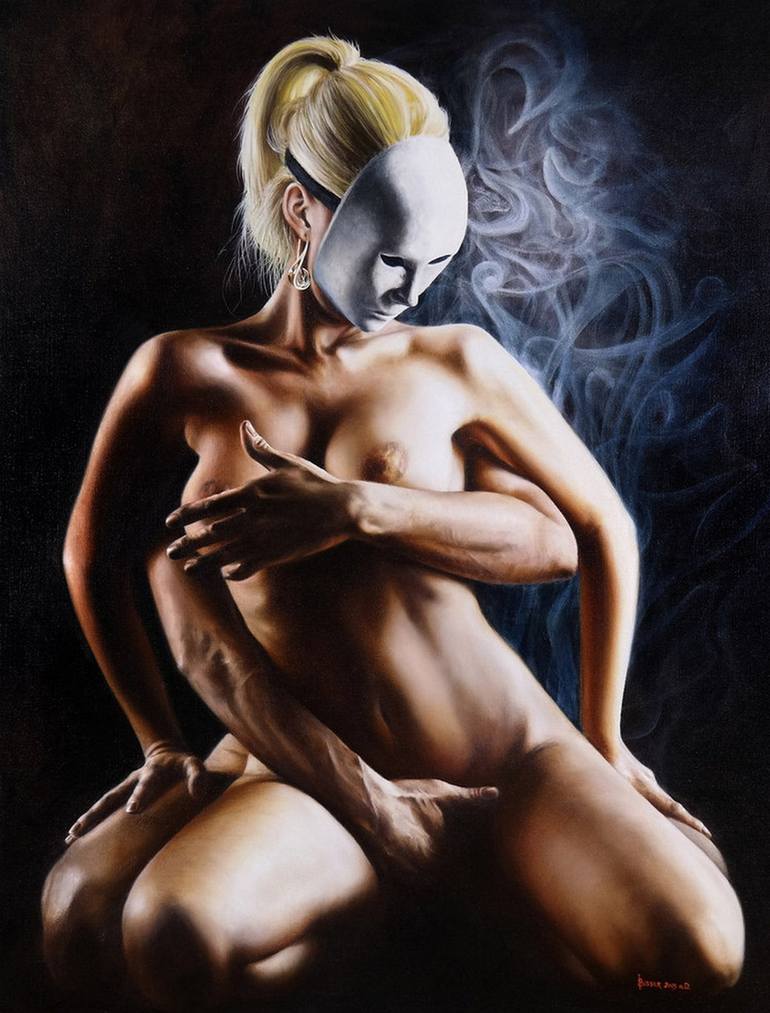 This painting was created to convey the mystical atmosphere of a pagan ritual. The female face is intentionally obscured by a mask to enhance the mystery of the scene. I employed traditional layering techniques to achieve the desired colors, resulting in an almost three-dimensional appearance of the...