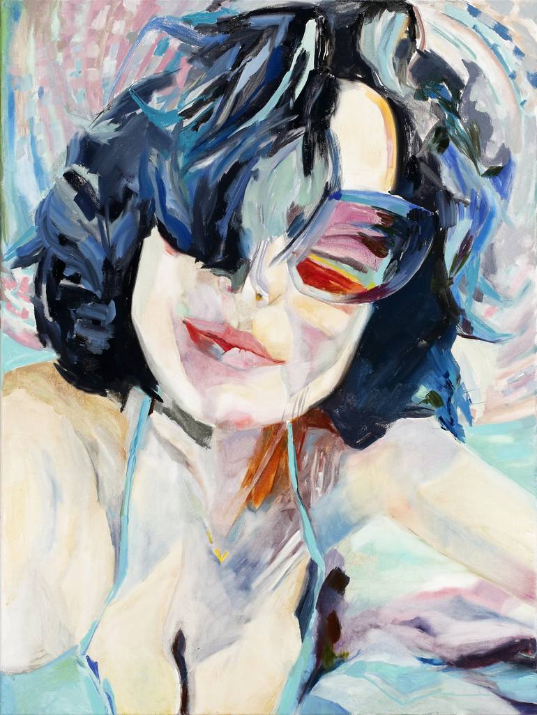 In the rays of the sun, a self-portrait unfolds, basking in the golden warmth. The artist's face takes center stage, bathed in a cascading dance of light and shadow. Amidst this play of illumination, a pair of stylish sunglasses conceals the artist's eyes, adding an intriguing layer of mystery to th...