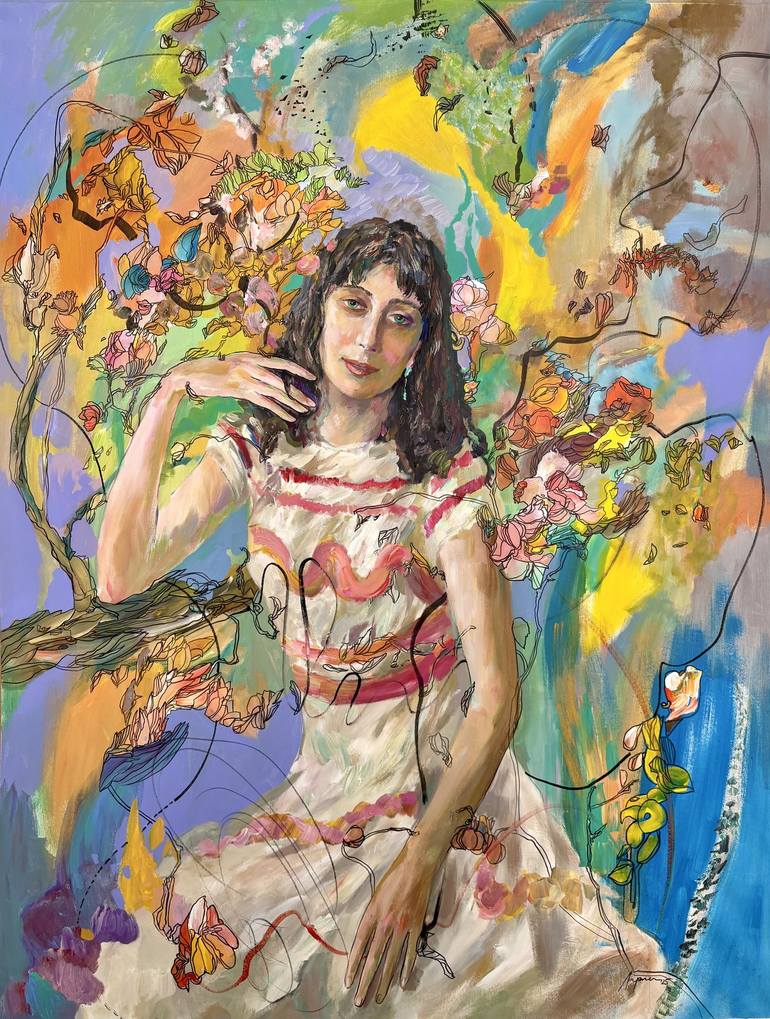 In this composition, I draw inspiration from Renoir’s rich color palette while also utilizing modern painting techniques. The combination of acrylic paints and Chinese ink creates a dynamic interplay of textures with colors that sparkle, shine, and radiate a pure, bright light. This combination of m...