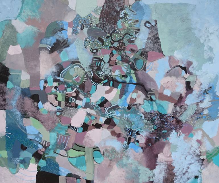 My art practice is a visual journal in progress. Each work refers to my lived experience; exploring what it means to be conscious in a material body. It’s not about making a fixed statement. As I paint in an intuitive way, I do so with an attitude of curiosity and receptivity toward what is stirring below the surface of sensory perception. Creative impulses inside me grow wildly - branching out in all directions. My art practice is rooted in the habit of cultivating ideas, and my attempt to make sense of them. The painting process becomes a tangible manifestation of this interior process, of adding and subtracting, one step forward, two back. Every painting is a conversation, idea, argument, or lament in progress. Nothing is fixed, everything is turning and folding in on itself, bobbing above and below the surface of consciousness, sometimes sinking, sometimes rising above.