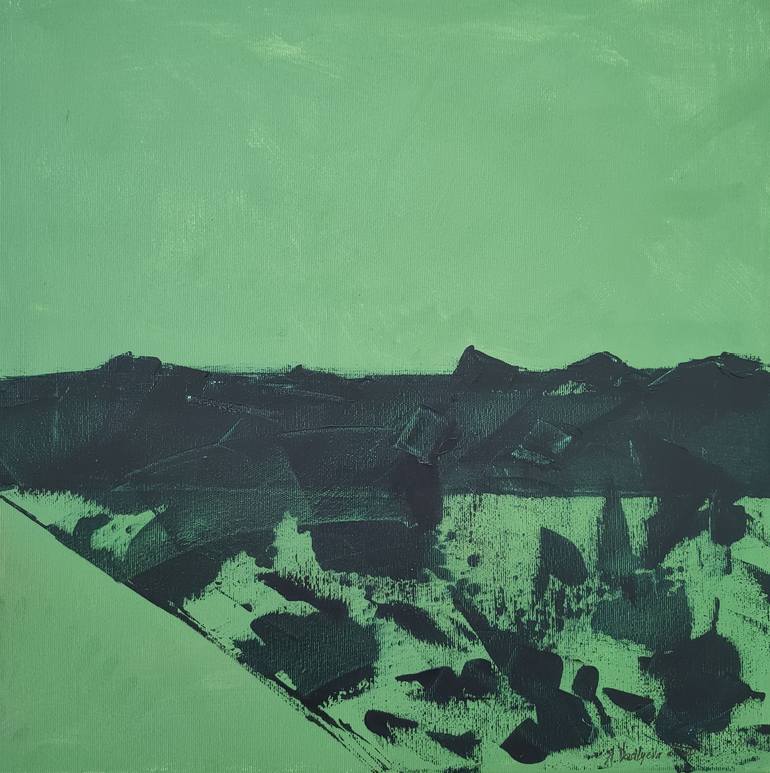 The simple and calm abstract painting. The artist was inspired by the countryside landscape and colorfield style. Minimalistic modern art in only two colors. This artwork was painted for relaxing and calming -there are no colorful emotional elements. It's the idea - to keep it very simple. Stable an...
