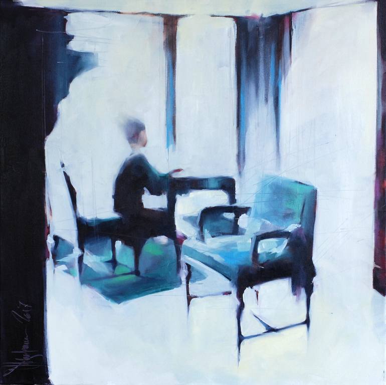 This picture is not about the interior. This picture is not about people. This picture is not about events. This picture is about the color and shades of green. Even it is about light. Which consumes itself all. Which devours shape and color. Which fills the entire space of the canvas. The picture i...
