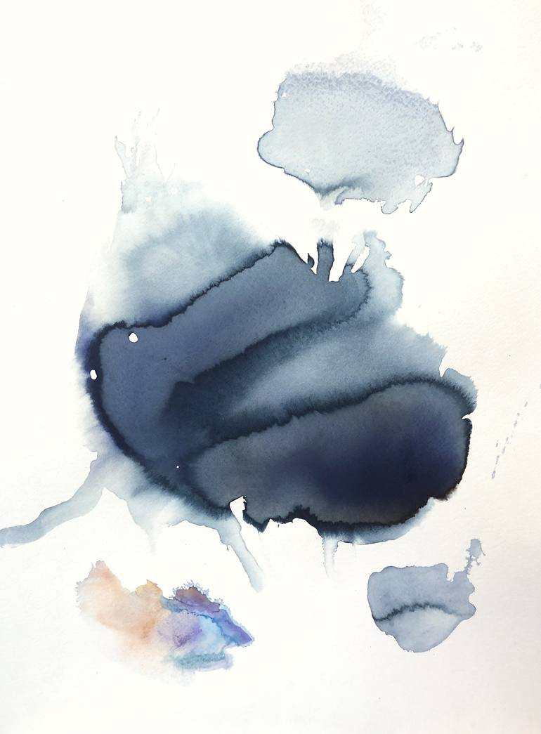 Watercolor on paper Abstract painting Clouds, raining, passing, fading into to you, waiting for you, something is near and it will go away, I need to stay....