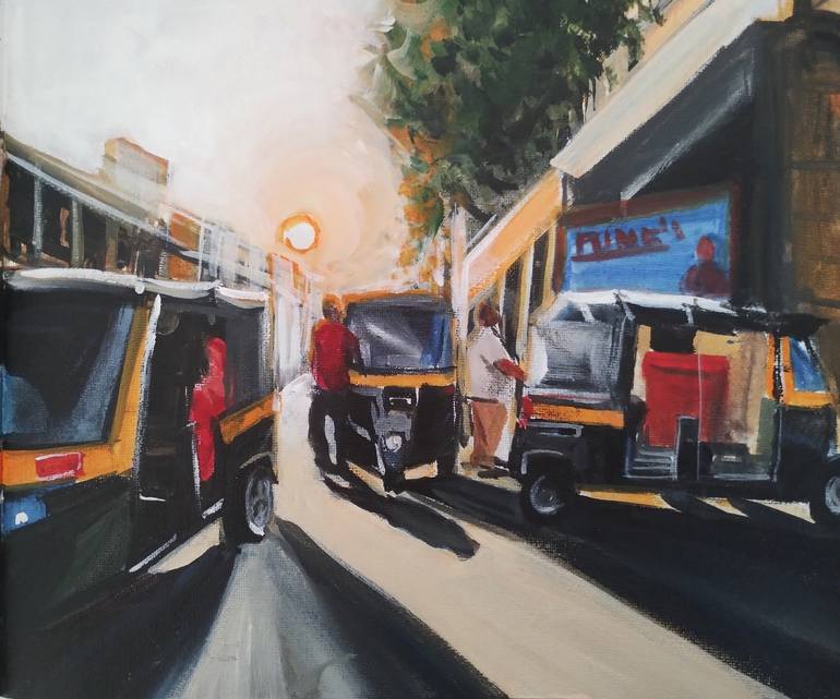 Inspired by the casually stunning phenomenon of high noon in a bustling city this acrylic landscape captures a slice of day that will brighten any room. It's tight treatment of the objects that animate the city and faithful attention to the atmospheric salience of the sun at noon captivates the sigh...