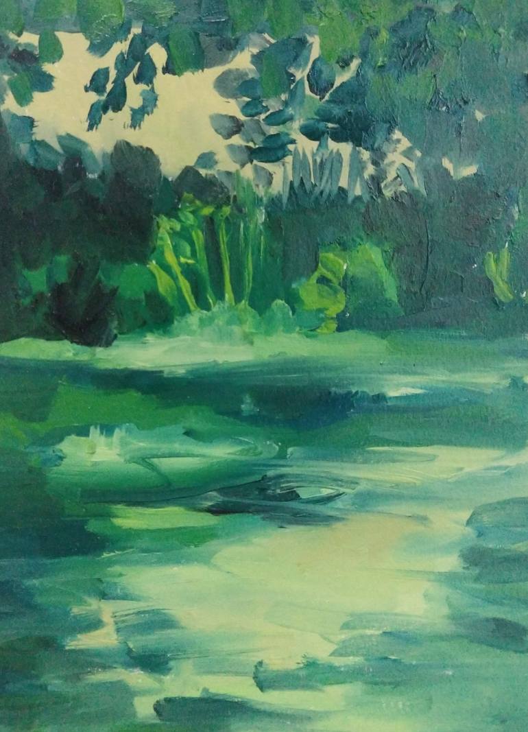 This painting is a part of the series of paintings that I did last fall in my back yard, watching changing colors and light.