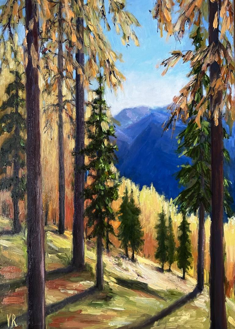 In my opinion, the high-altitude Engadin Valley in Graubuenden is especially beautiful in autumn, when the endless sea of larch trees turns yellow and orange. And the contrast with the blue mountains is especially striking. My paintings are not only a wonderful memory of the places I have visited, b...