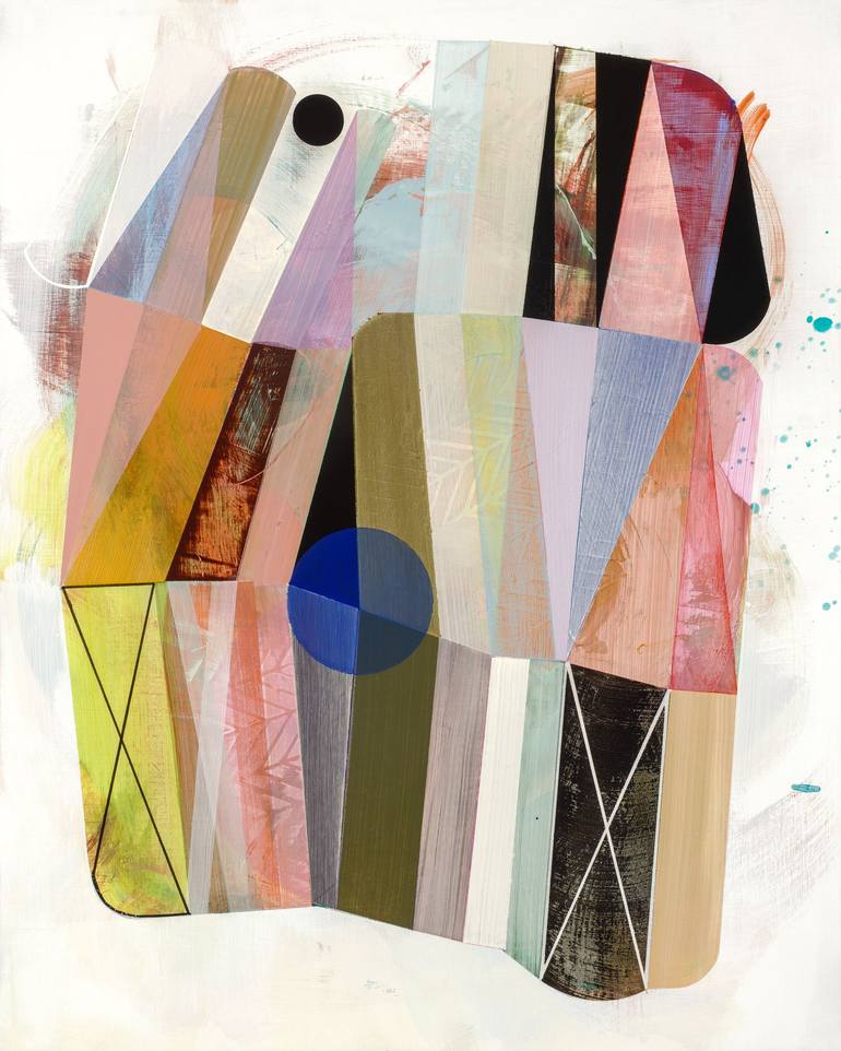 My paintings include hints of two-dimensional icons, stained glass windows, ceremonial objects, carnivalesque paraphernalia, dressmaker pattern pieces, and carefully designed altars. I see the work as functional and as such it may resemble a strange alchemical device, a crude vessel, a protective figure, a fortune teller, a shamanic robe, an asymmetrical mandala…all of which shepherd the process of transformation. I am inspired by the decadence of Art Deco; the hope and efficiency of Mid-Century aesthetics; the joining of texture, light and comfort in interior design; the riotous maximalism in haute couture; the rawness of tribal mark making; and the implied doorway to the unseen in esoteric symbology. All of these influences are cradled in deep investigations into color, particularly its role as a visual phenomenon and catalyst for sparking feeling and narrative. My work is collected worldwide and featured in collections and collaborations in Denver, Seattle, New York City, Macau, Hong Kong, Singapore, Nanjing, Dubai, Edinburgh, and Amsterdam among other places.