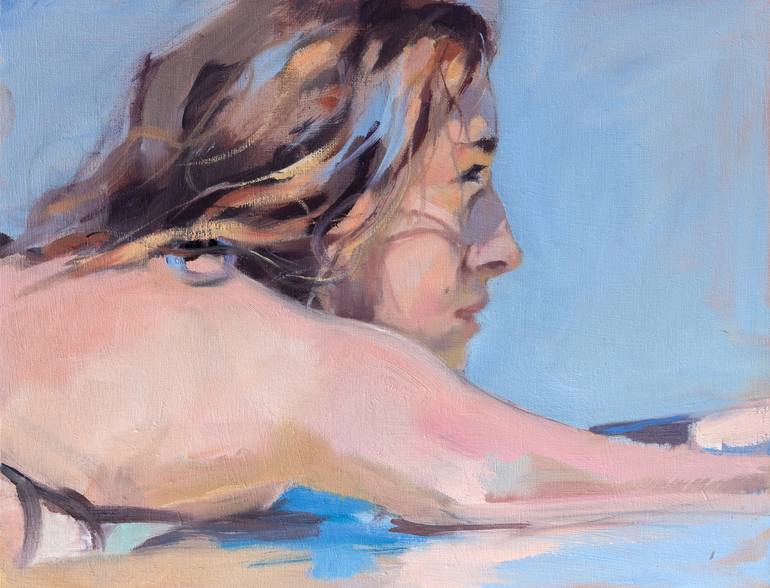 Girl on the shore of the beach looking at the sea. It's oil on canvas.