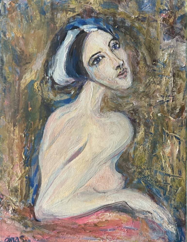 The visage of the bathing woman reminded me of the Dominique Ingres' female figures in aTurkish bath. Hence the title. Sometimes, the painting is already there and we simply discover it in the process of wrestling with it