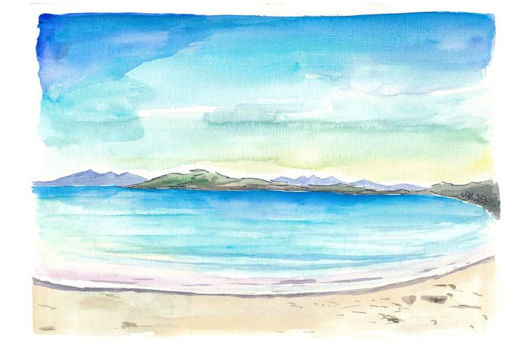 Inishbofin White Beach on Irish Island on Atlantic - watercolor on paper