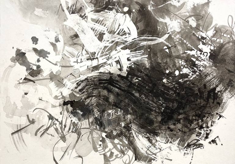 "They come and go. " ------- This artwork is an expression of inner conflict. It represents the flow and movement of emotions. Japanese paper is pasted on wooden panel, then painted with traditional Japanese ink and masking ink. ・Signed in the lower right corner of the picture ・Ready to hang