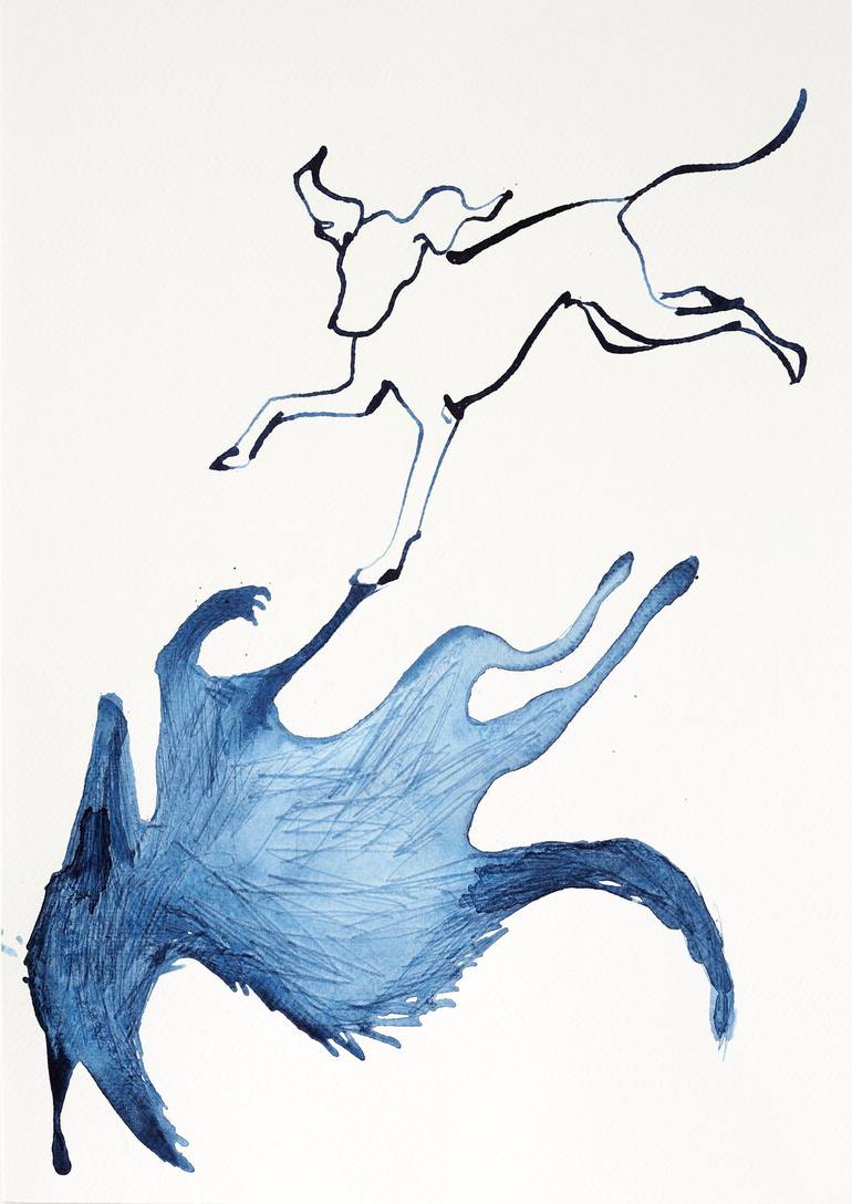 My dog is an affectionate shadow of mine at home, following me here, there and everywhere. His own inner nature of the hunting wolf comes out when we're out walking. I wanted to portray his shadow self, and his interaction with it.