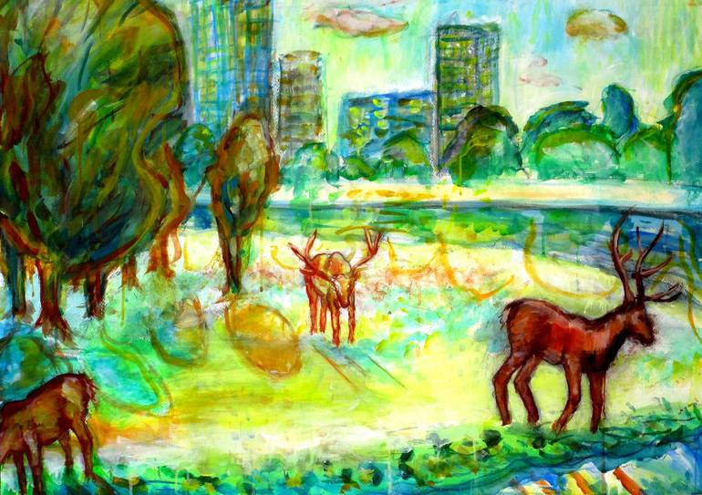 Large painting painted with professional acrylic paint, premium brand Lascaux. Expressive painting ready to hang with frame. Inspired by expressionism and impressionism, Matisse, David Hockney, Peter Doig paintings. Part of the serie; Night water visions. It is about going outside after the lockdow...