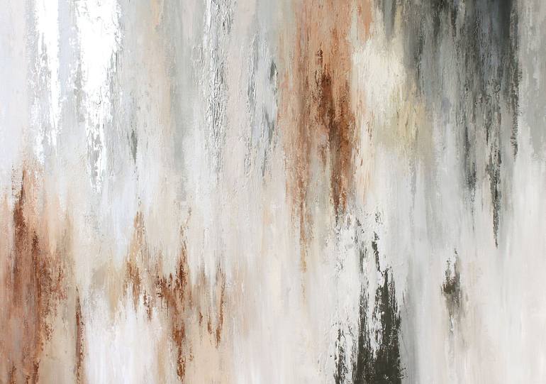 In this piece, I poured my emotions into layers of acrylic and silver leaf, creating a dynamic flow of grays, browns, and beiges that evoke both calm and intensity. The textures and shimmering accents capture the complexity of fleeting moments, inviting you to feel the subtle shifts of energy. This ...