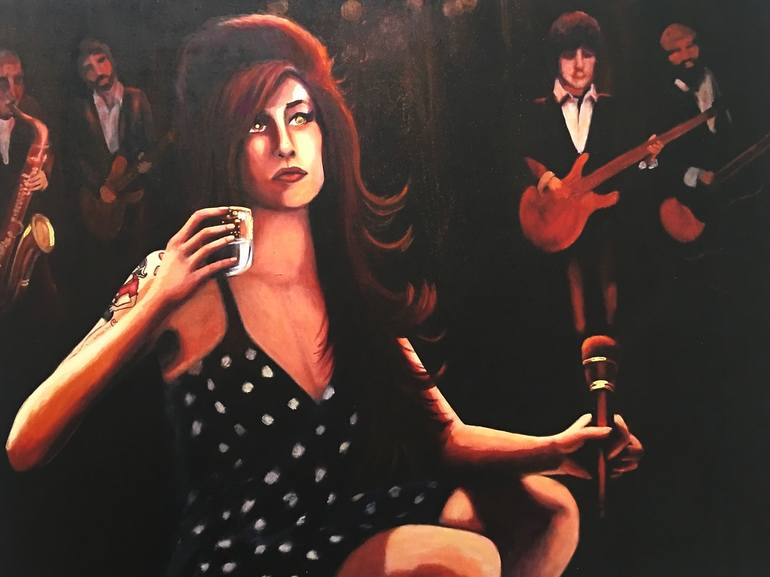 “Instrumental Break “ Amy Winehouse performing with The Dap Kings at The Bowery Ballroom NYC Previously endorsed and retweeted on Twitter by Amy’s father. Acrylics and Genuine Gold Leaf Premium Cotton Canvas Size 48” x 36” Limited Edition Prints of 27 Limited Edition prints /27 (Embellished wi...